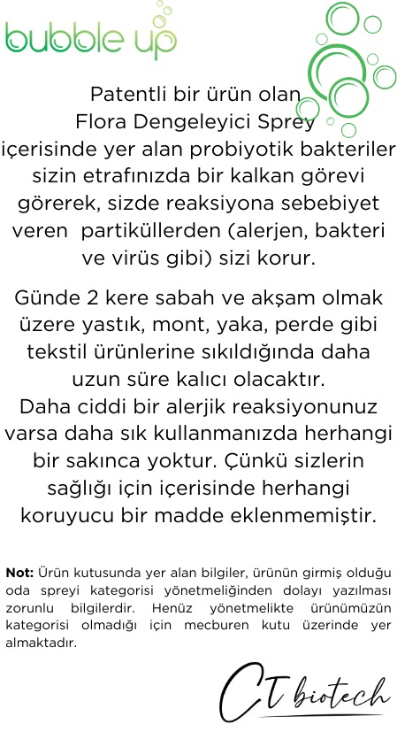 Aşağıda yer alan görsellerde, patentli ürünümüz Bubble Up Probiyotikli Flora Dengeleyici Sprey hakkında detaylı kullanım talimatlarını ve önemli bilgilendirmeleri bulabilirsiniz.